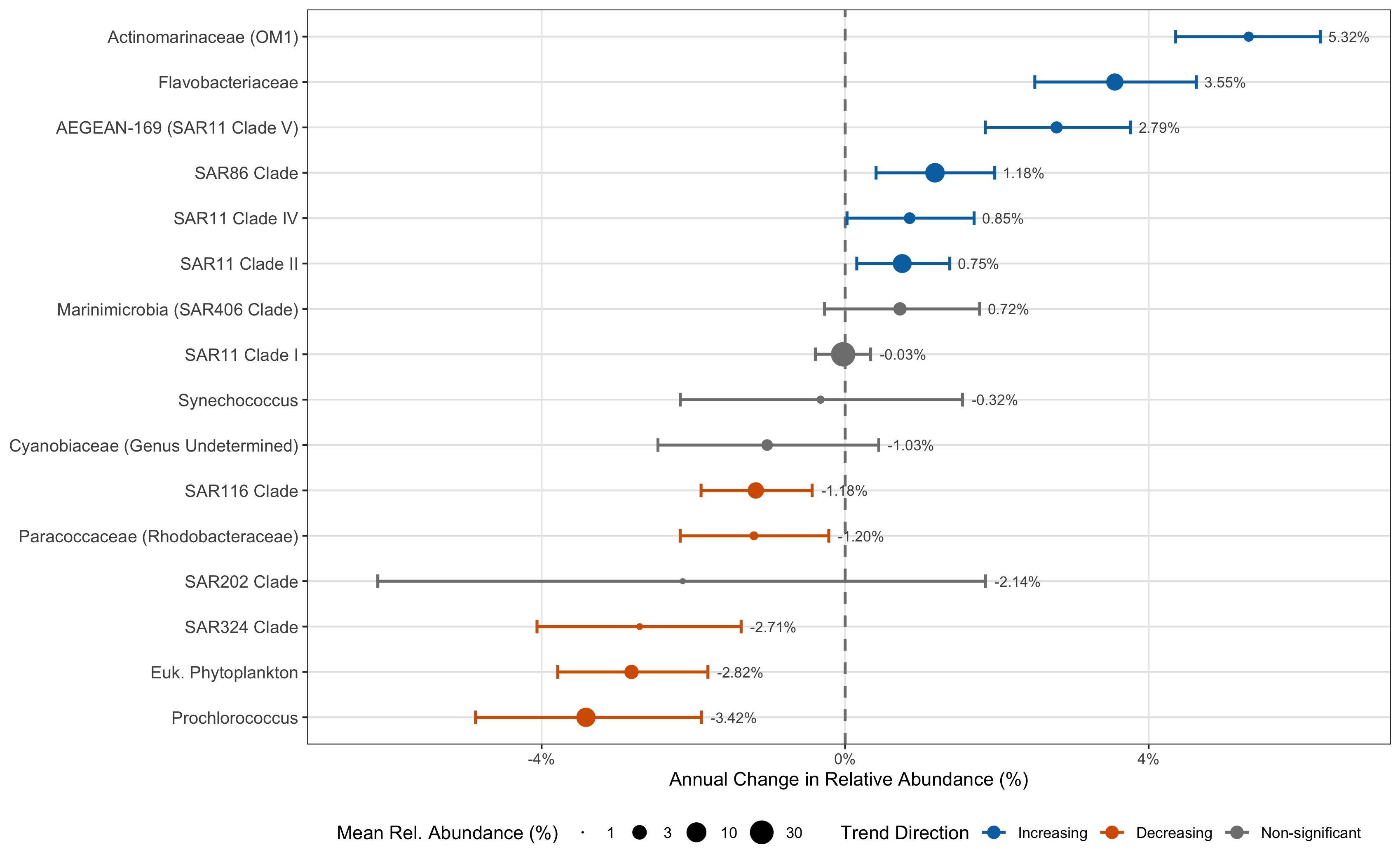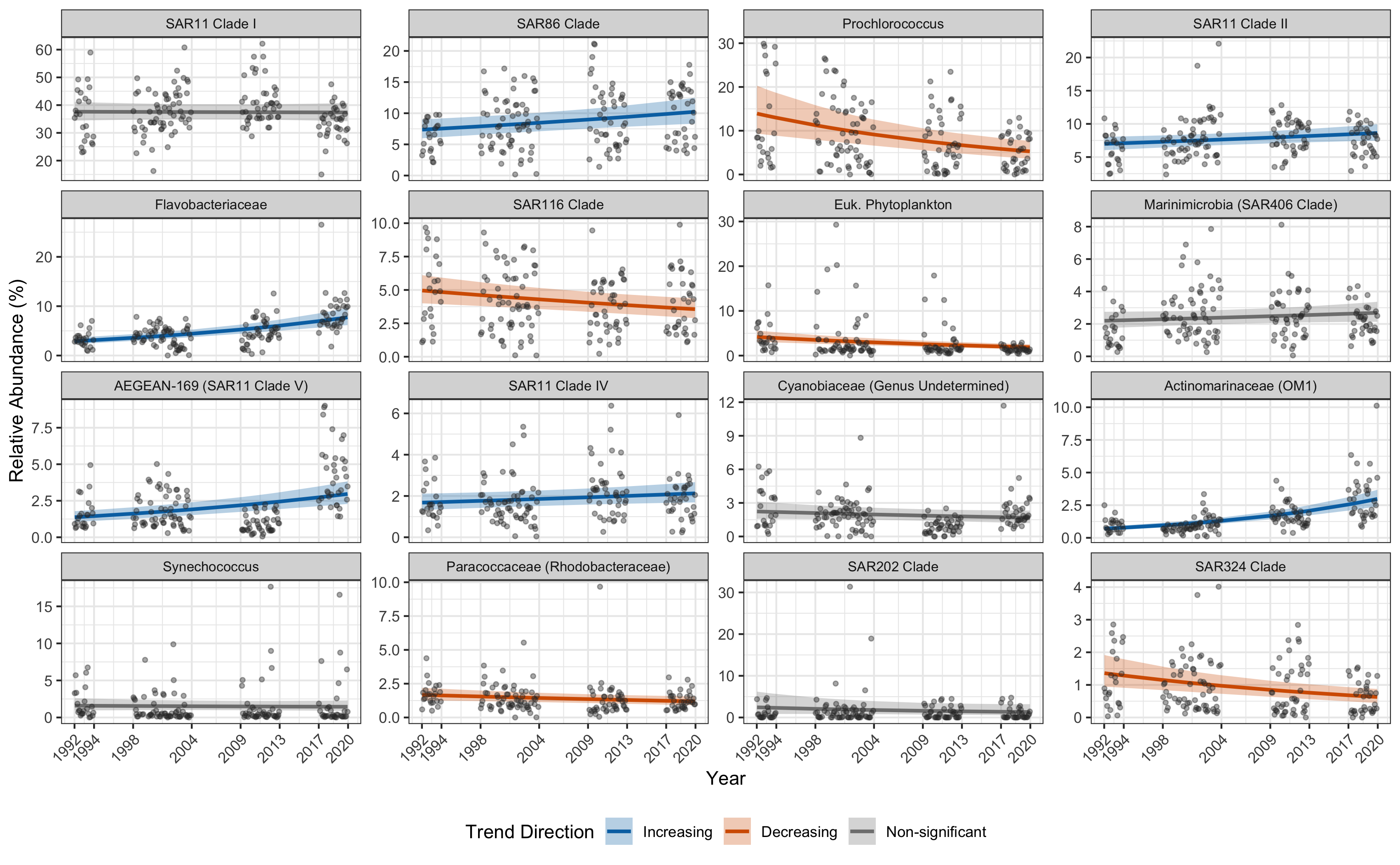 We are analyzing 16S microbiome data from a 30 year time series